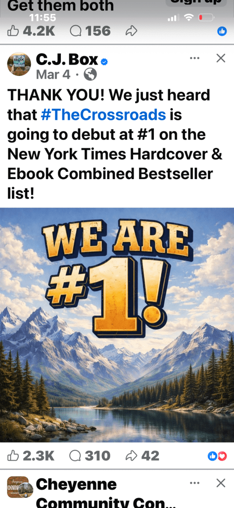 The starred review for Kirk’s for the upcoming Walt Longmire Novel… Be sure to read the last line,” Johnson posted on his Facebook page.